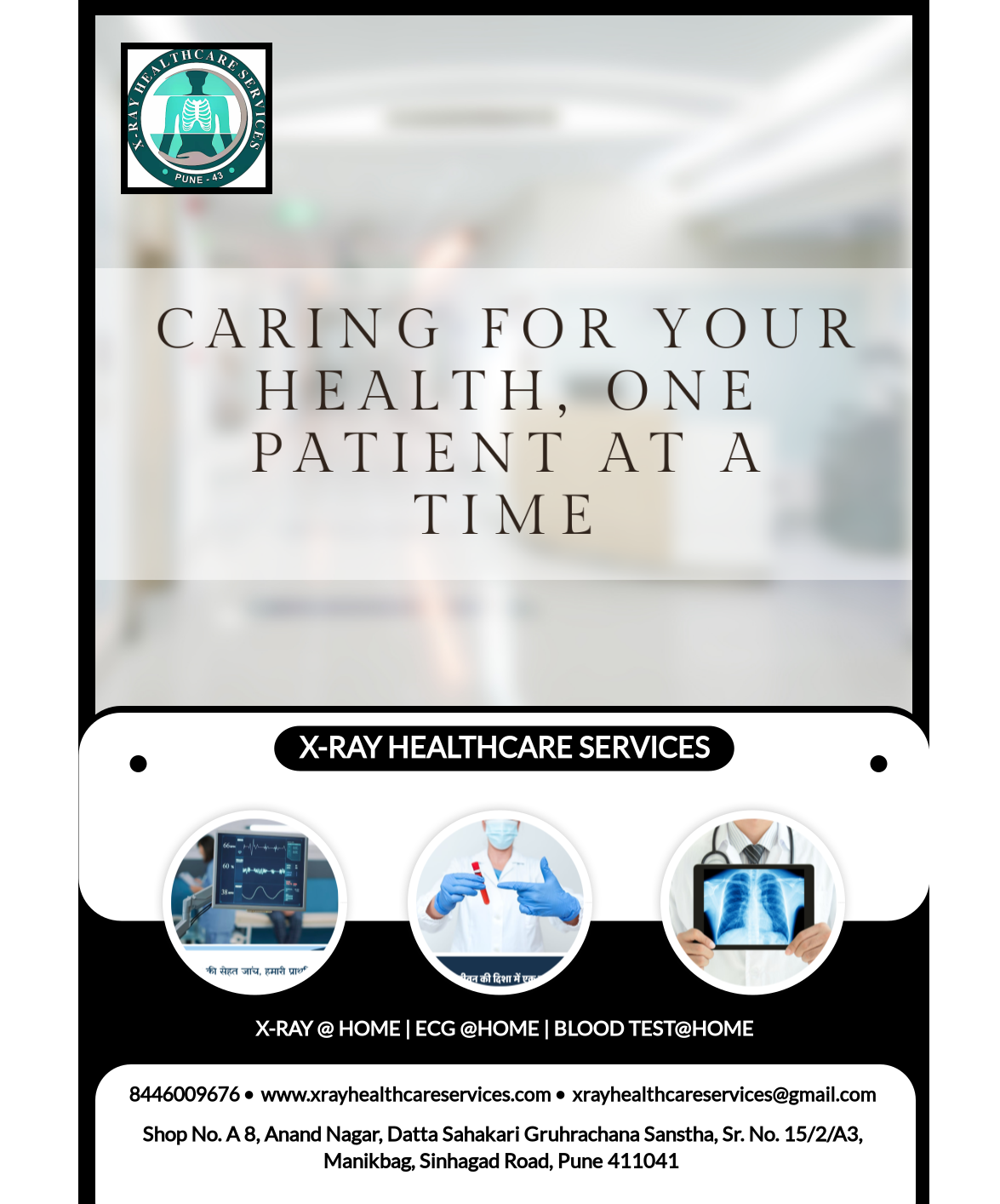 Reliable Healthcare Services at Your Doorstep – Across Pune & PCMC We provide digital X-rays, ECGs, and a comprehensive range of healthcare services, all delivered conveniently to your home. Whether you face mobility challenges or simply prefer the ease of receiving medical care in a familiar environment, our experienced team is just a phone call away. At X-Ray Healthcare, we are committed to delivering high-quality care and precision in every service. Your health is our top priority, and we ensure that all diagnostic services are performed with the utmost accuracy and reliability. 📞 Call us today for hassle-free, professional healthcare delivered right to your doorstep.