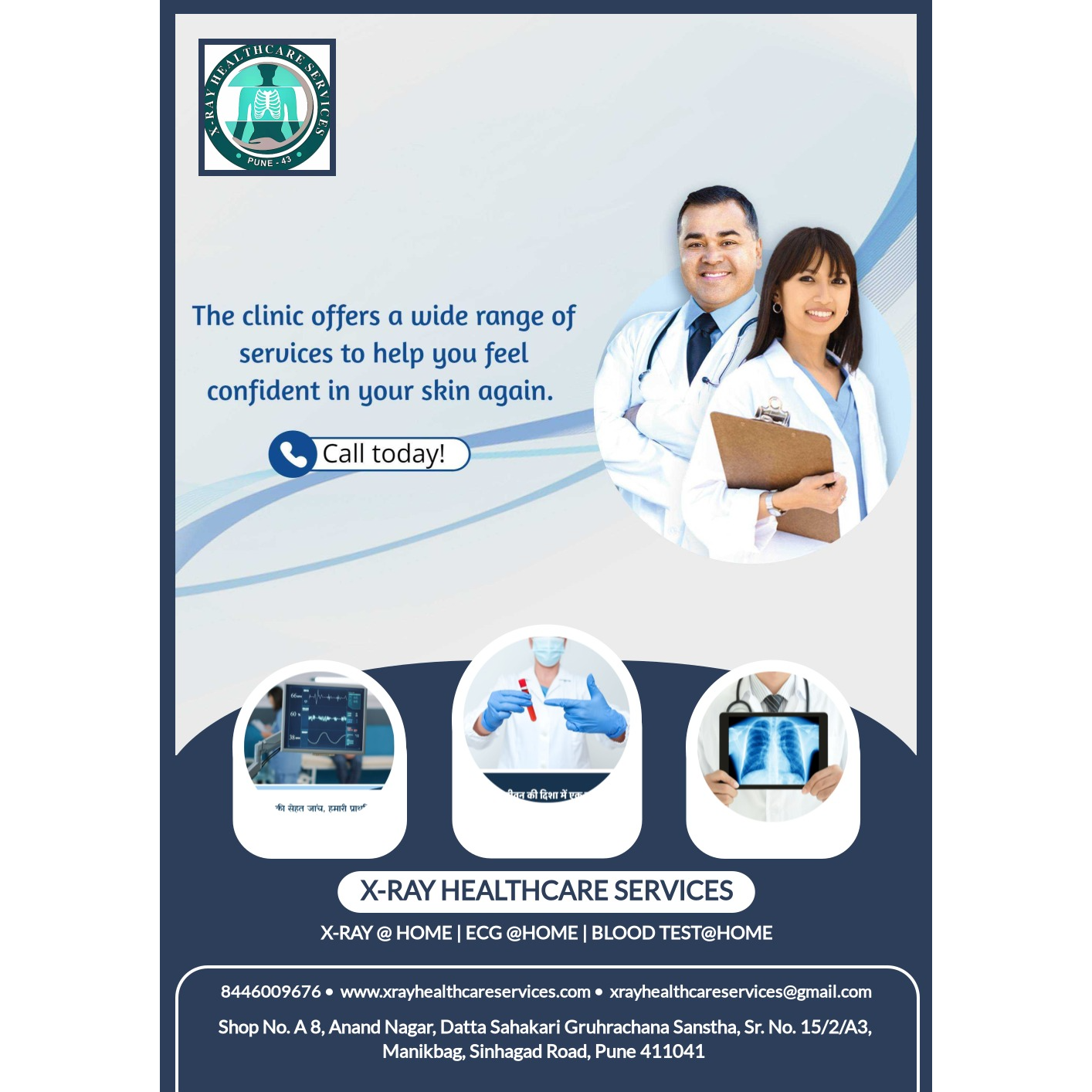 Recently we are facing a lot of problems regarding our health because of our daily routine and that's why, X ray Healthcare services introduce all types of health services at your door step just like ECG, X-Ray, Blood test, Urine test .. etc. to help improve your health and to get healthy life more convenient for people to access health support right from their homes. In today’s fast-paced world, many people struggle to maintain healthy routines due to busy schedules, and services that bring healthcare to your doorstep can make a big difference. So feel free to call us any time and we are there to ready to give best service in whole Pune & PCMC region.