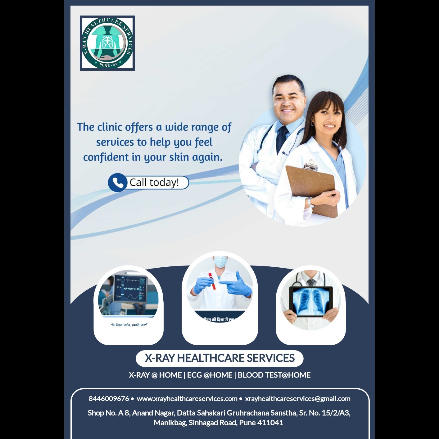 X-Ray Healthcare Services brings digital X-rays and a wide range of essential healthcare services right to your doorstep in Pune and PCMC. This makes healthcare more accessible and convenient, especially for individuals who may find it challenging to visit clinics or hospitals. In addition to home X-rays, we also provide: Home sample collection (blood, urine & other tests), ECG at home, Full body health checkups, Nursing & patient care services and Medicine delivery assistance We are committed to making healthcare easy, reliable, and comfortable for you and your loved ones—right from the comfort of your home.