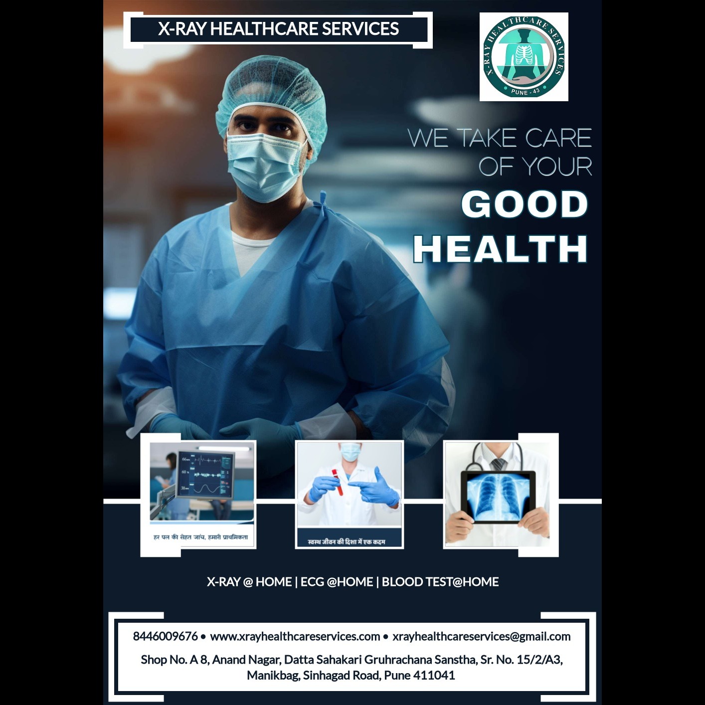 X-Ray Healthcare Services offers digital X-rays, ECGs, and a wide range of healthcare services across Pune and the PCMC region all at the convenience of your home.our services are just a phone call away. At X-ray Healthcare, we pride ourselves on quality care and precision in every service we offer. Your health is our priority, and we also provides services like blood collection, ECG, and urine sample collection can be incredibly convenient and helpful for many people . Call us today for easy, hassle-free healthcare delivered to your doorstep.